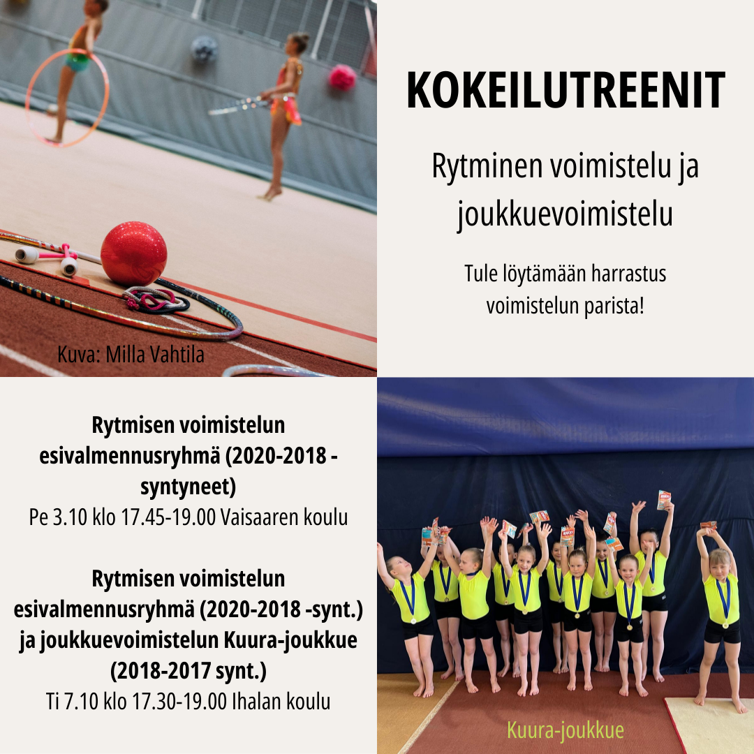 Oletko joskus harrastanut joukkuevoimistelua tai tunnet jonkun, jolla on joukkuevoimistelusta kokemusta? Oletko miettinyt, voisiko valmentajana toimiminen olla juuri sinun juttusi? Etsimme uusia…